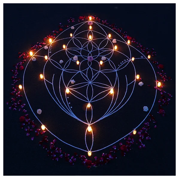 Feminine aspects of the tree of life, with dahlias and roses.